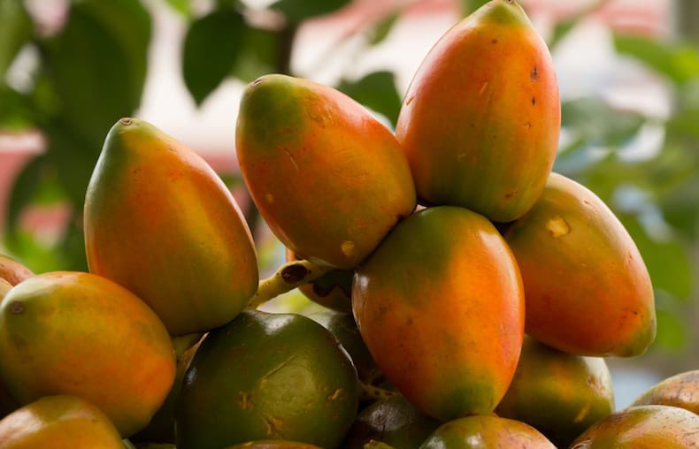 6. El chontaduro y el Borojó: También proveniente del Valle del Cauca, son fuente natural de energía, alto contenido de fósforo, calcio, carbohidratos y aminoácidos esenciales para el cuerpo humano por lo que se le atribuyen también ventajas antioxidante y afrodisíacas. Puedes encontrar pulpas que Borojó con chontaduro en una mezcla especial.